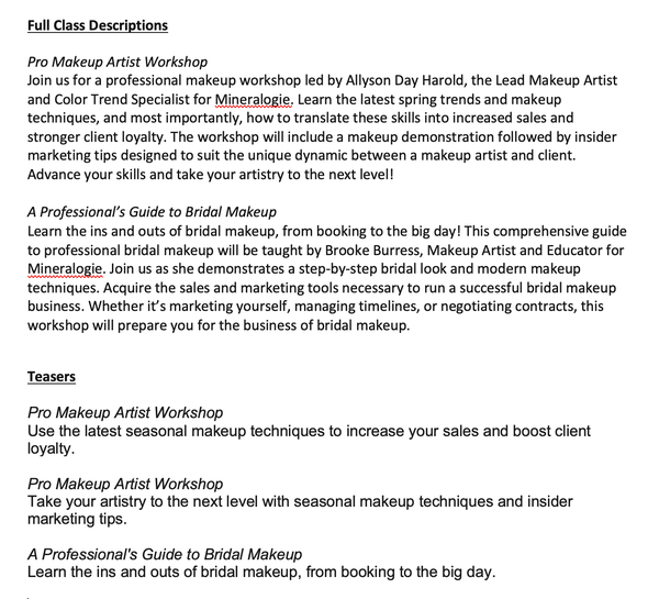 Mineralogie Mineral Makeup • 1st January 2015 Class Descriptions Short descriptions and teasers about upcoming makeup workshops.