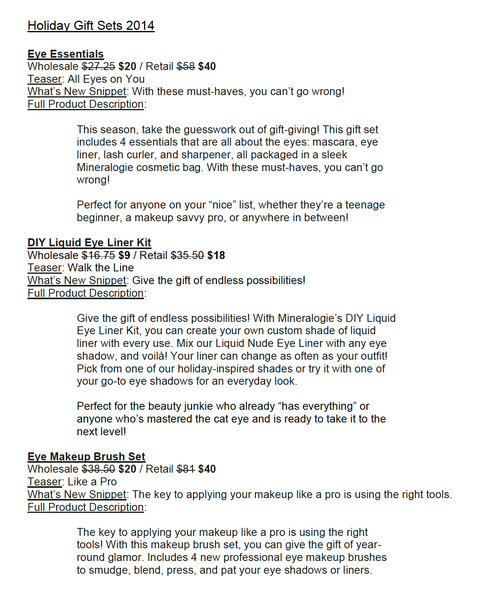 Mineralogie Mineral Makeup • 1st November 2014 Content for eCommerce Website Product descriptions for a mineral cosmetics company's website.