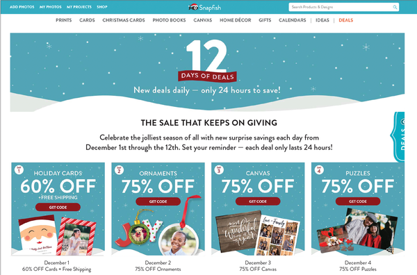 Snapfish • 1st December 2021 Holiday Marketing Campaign Wrote website/email copy for the "12 Days of Deals" campaign.